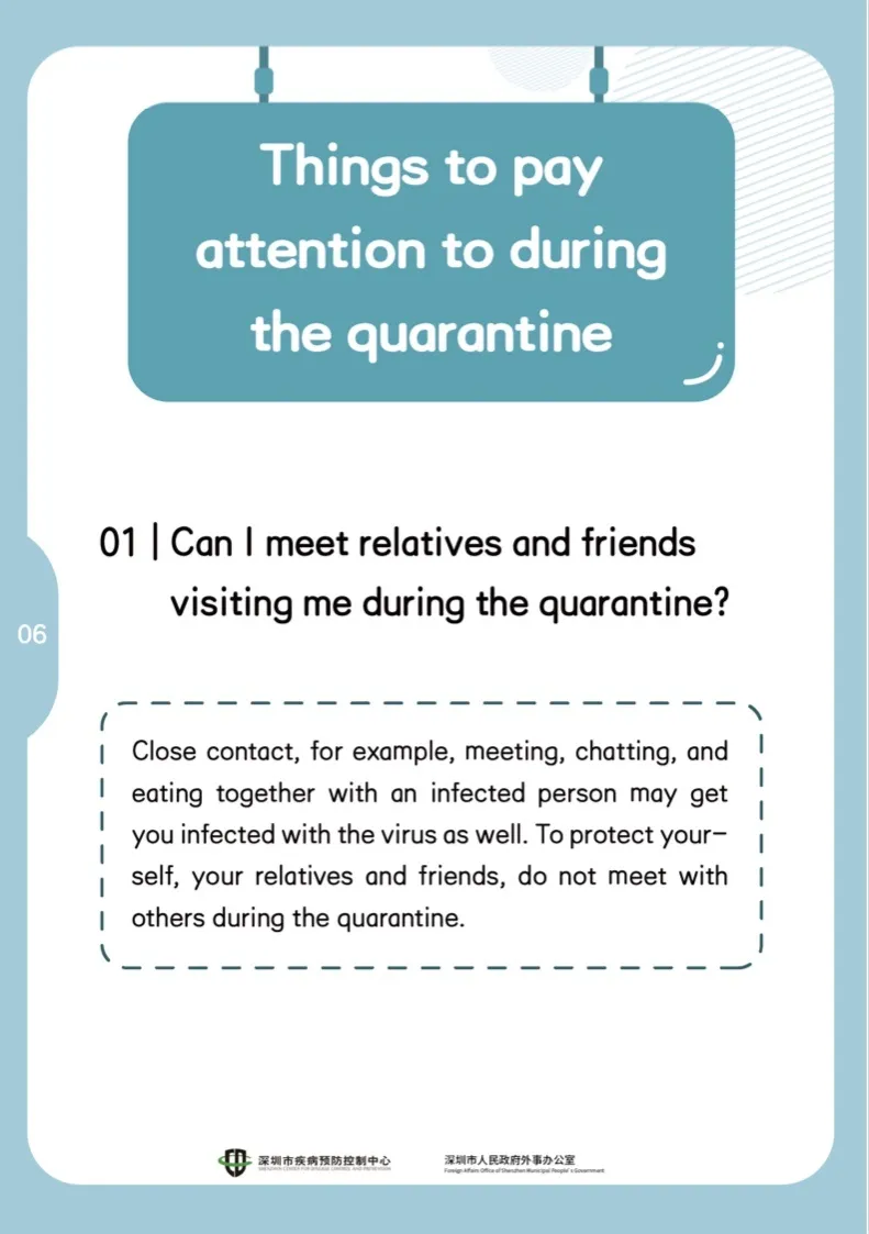 如果有人感染了病毒,而您近距離與其接觸,比如見面、聊天、聚餐,均有可能會被病毒感染。為了保護自己和親戚、朋友的安全,隔離期間不應與他人見面。
