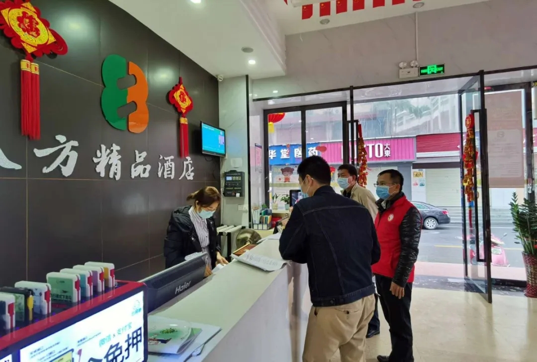 在街道防疫指揮部的支持指導下,他統(tǒng)籌職責分工,梳理管理規(guī)范,協調市監(jiān)、公安、社區(qū)統(tǒng)籌聯動。30名黨員干部沖在一線,分兩片4組,第一時間地毯式摸排轄區(qū)內169家旅業(yè)場所,點對點上門指導、服務57家開業(yè)旅業(yè)場所做好防疫工作。