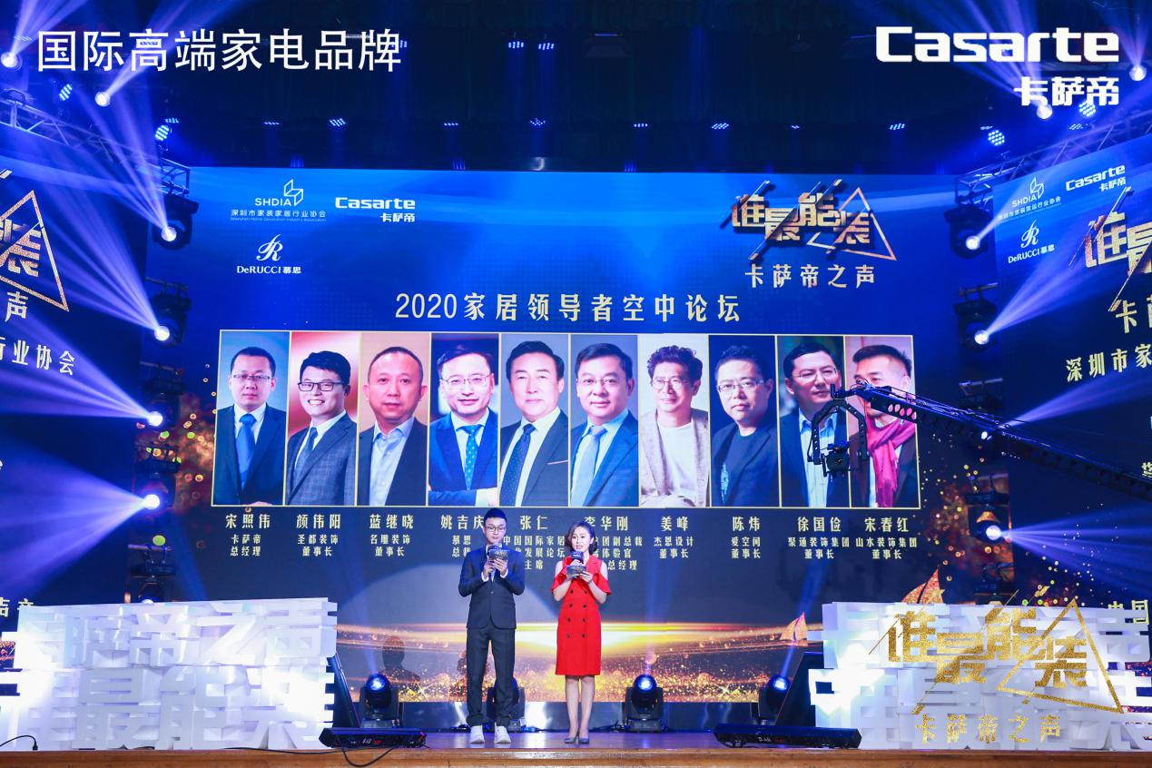 在疫情影響下,以《卡薩帝之聲——誰最能“裝”》為主題的中國家裝行業(yè)領袖年度演講以空場的形式進行,主辦方同時舉行了2020家居領導者空中論壇。中國國際家居產業(yè)發(fā)展論壇主席張仁,海爾集團副總裁、首席體驗官、中國區(qū)總經理李華剛,中國室內設計第一股、杰恩設計董事長姜峰,慕思總裁姚吉慶,上市裝企名雕董事長藍繼曉,愛空間董事長陳煒,中國室內裝飾行業(yè)協(xié)會副會長、上海聚通裝飾集團董事長徐國儉,國際高端家電品牌卡薩帝總經理宋照偉,杭州圣都裝飾集團董事長顏偉陽,安徽山水裝飾集團董事長宋春紅等來自全國泛家居領域的十位領袖空中助力,通過視頻方式來推動家居行業(yè)發(fā)展。