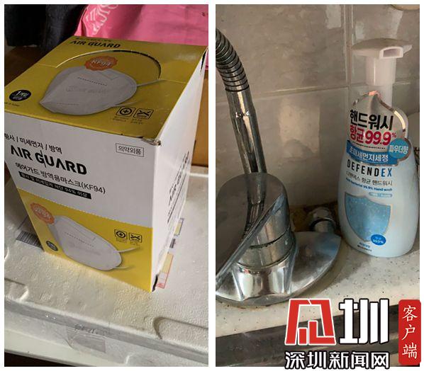 張同學(xué)在家里存了口罩和消毒洗手液。