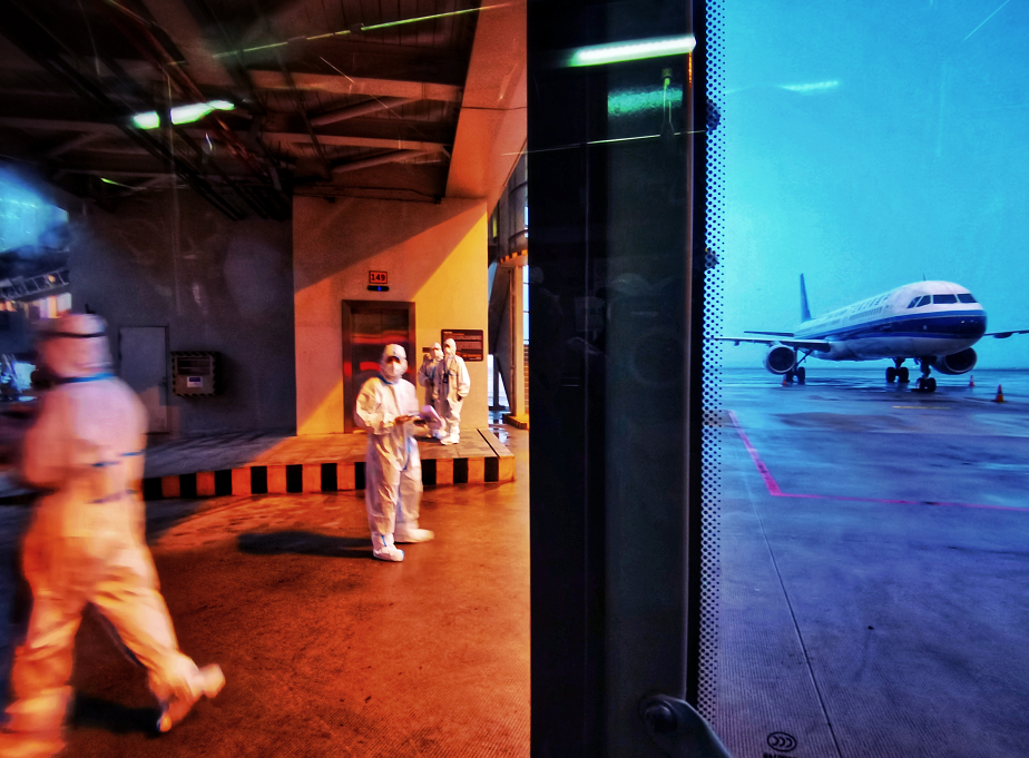 將近25個小時(shí)的路途,最困難的就是穿著防護(hù)服,要做到全程不吃不喝不上廁所。但是,為了自身和他人的健康,我只能克服。在轉(zhuǎn)乘的5個小時(shí)里,才喝了一些水,上了趟廁所。即便是上廁所時(shí),我也是戴好一次性手套,用紙巾擦拭所有摸過的地方。