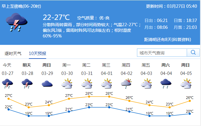 氣象部門預(yù)計,27-28日受高空槽和冷空氣影響,有一次雷雨過程,并伴有短時強(qiáng)降水和8-9級短時大風(fēng)等強(qiáng)對流天氣,28日氣溫下降3℃左右。