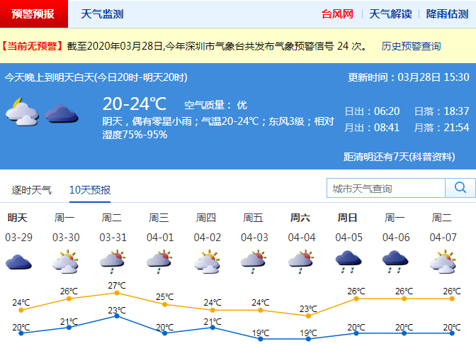 28日降雨結(jié)束 未來一周深圳云量較多,部分時間有雨