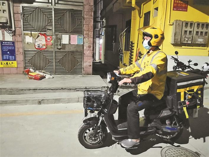祝龍龍正給居民送外賣。