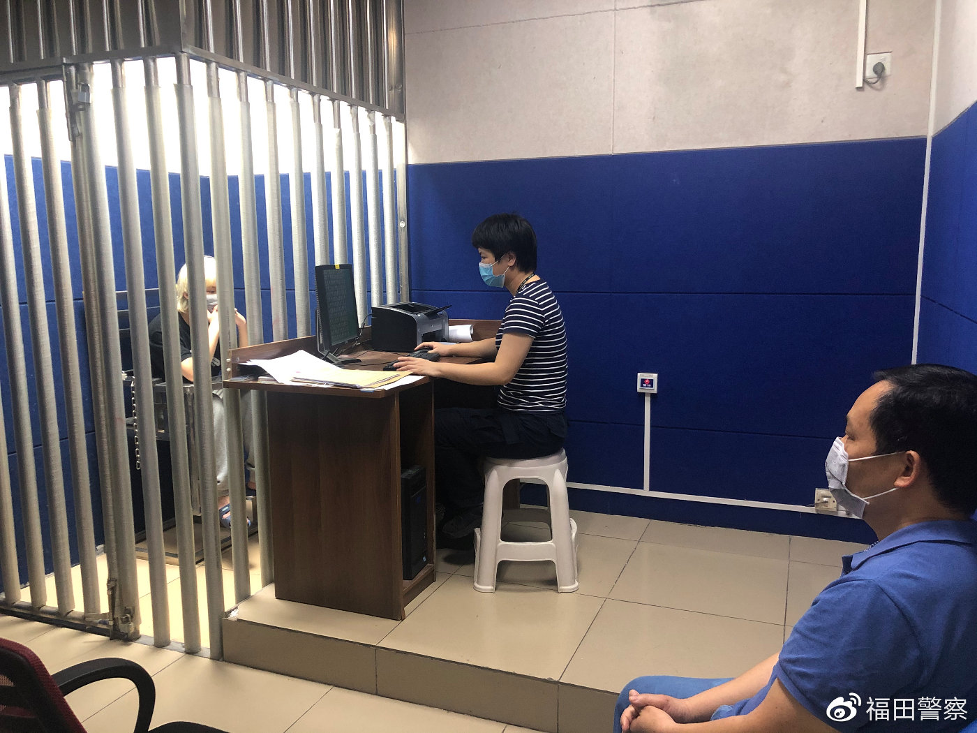 民警對嫌疑人進行審訊