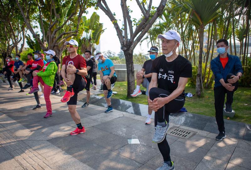 今天的登山活動(dòng),其實(shí)從蓮花山西門的跑步開始的。不到十分鐘,王石等就達(dá)到了蓮花山頂,隨后從山頂下山,跑步3.5公里到達(dá)蓮花山與市民中心的連廊平臺(tái),在此完成拉伸后,整個(gè)登山和跑步活動(dòng)完美結(jié)束。