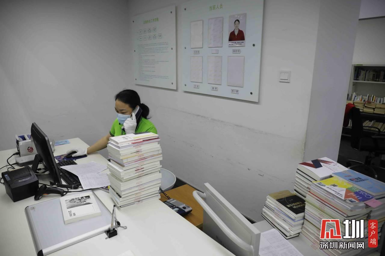 圖書館服務(wù)臺,工作人員正在接聽市民電話。
