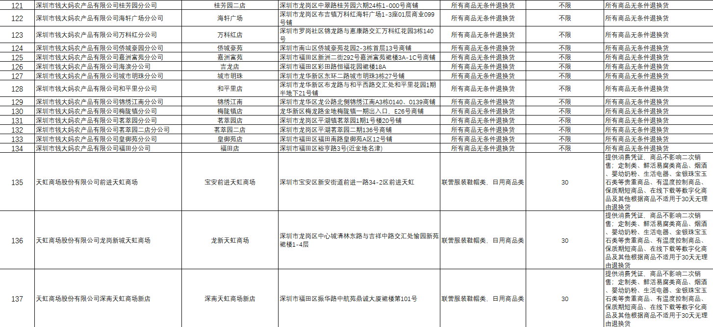 附件:首批參與“線下無(wú)理由退貨承諾”企業(yè)名單