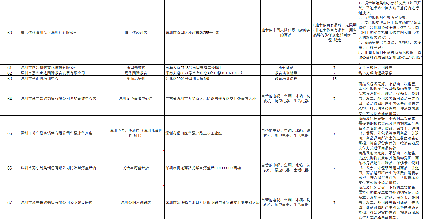 見(jiàn)圳客戶(hù)端·深圳新聞網(wǎng)2020年4月30日訊(深圳特區(qū)報(bào)記者 莊瑞玉 通訊員 張媛)在深圳實(shí)體店購(gòu)物也可以無(wú)理由退貨了!30日,記者從深圳市消費(fèi)者委員會(huì)獲悉,由市消委會(huì)發(fā)起的“凝聚你我力量讓消費(fèi)更溫暖”系列公益活動(dòng)之“線下無(wú)理由退貨承諾”活動(dòng),獲得行業(yè)協(xié)會(huì)、大型商場(chǎng)、連鎖品牌的積極響應(yīng),目前已有蘇寧、天虹商場(chǎng)、迪卡儂、優(yōu)衣庫(kù)、百果園、錢(qián)大媽、學(xué)而思、嘉華世達(dá)和國(guó)樂(lè)飄香9家企業(yè)旗下共計(jì)160家門(mén)店成為深圳首批“線下無(wú)理由退貨”實(shí)體店,消費(fèi)者可以放心買(mǎi)買(mǎi)買(mǎi)了!