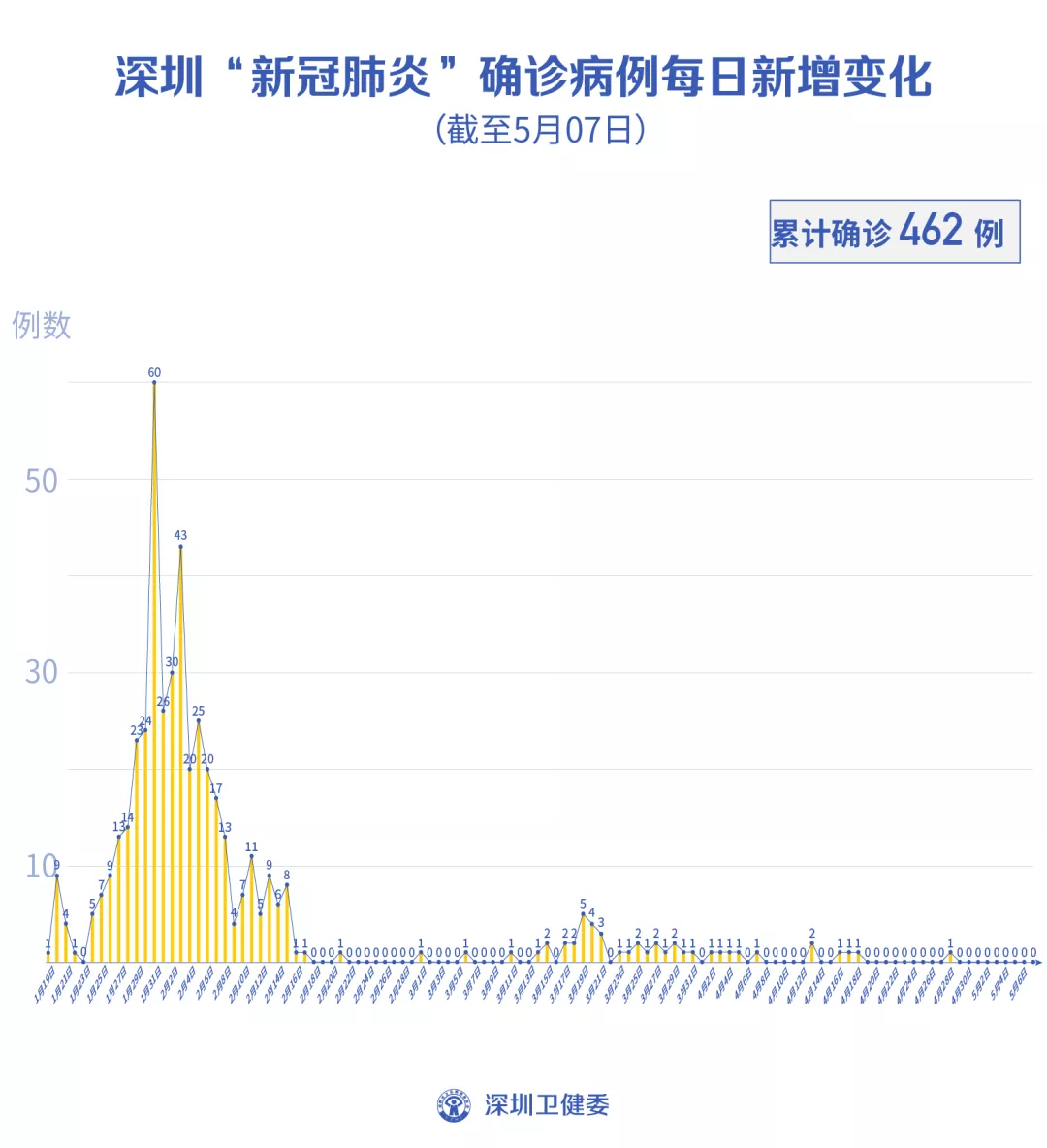 截至5月7日24時,深圳累計報告新冠肺炎病例462例。在院治療僅有1例。