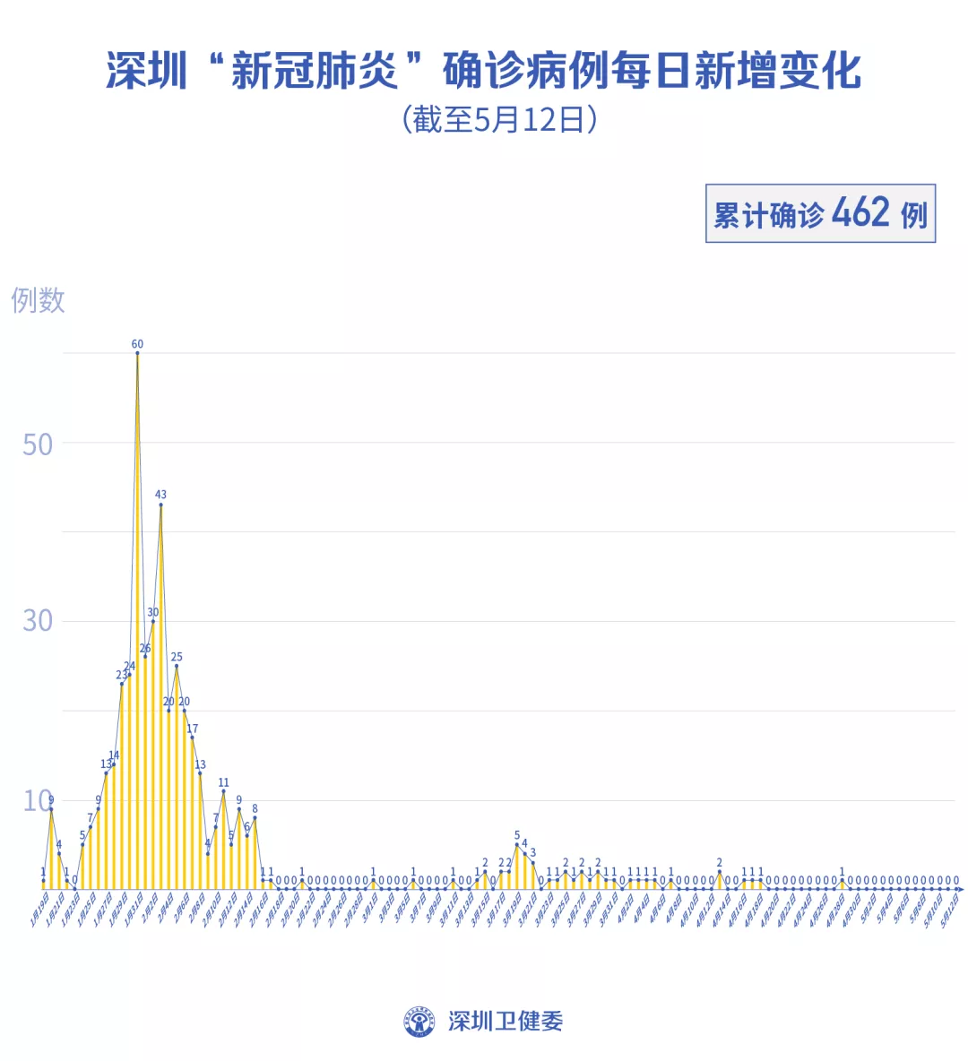 截至5月12日24時,深圳累計報告新冠肺炎病例462例。