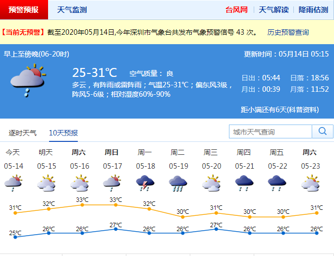 臺風(fēng)還需往后靠靠!今日深圳多云 有陣雨或雷陣雨