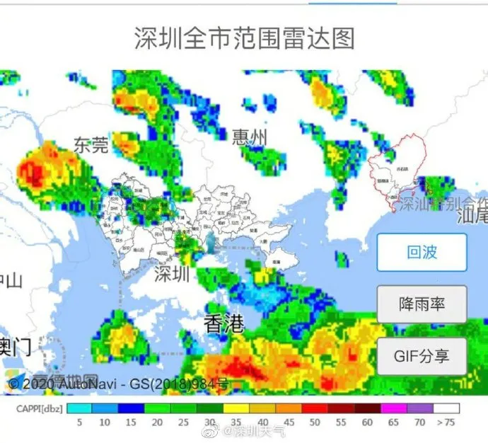 【深圳市分區(qū)暴雨黃色預(yù)警】預(yù)計(jì)福田區(qū),羅湖區(qū),南山區(qū),鹽田區(qū),大鵬新區(qū),西部海區(qū),東部海區(qū),寶安區(qū)(新安、西鄉(xiāng)、航城街道),龍崗區(qū)(南灣、坂田、園山、橫崗、布吉、吉華街道),龍華區(qū)(民治街道)和坪山區(qū)(馬巒、碧嶺街道)1-2小時(shí)內(nèi)將出現(xiàn)20-40毫米降水,深圳市氣象臺(tái)于2020年05月18日15時(shí)50分在上述地區(qū)發(fā)布暴雨黃色分區(qū)預(yù)警,全市進(jìn)入暴雨戒備狀態(tài),請(qǐng)注意防范。
