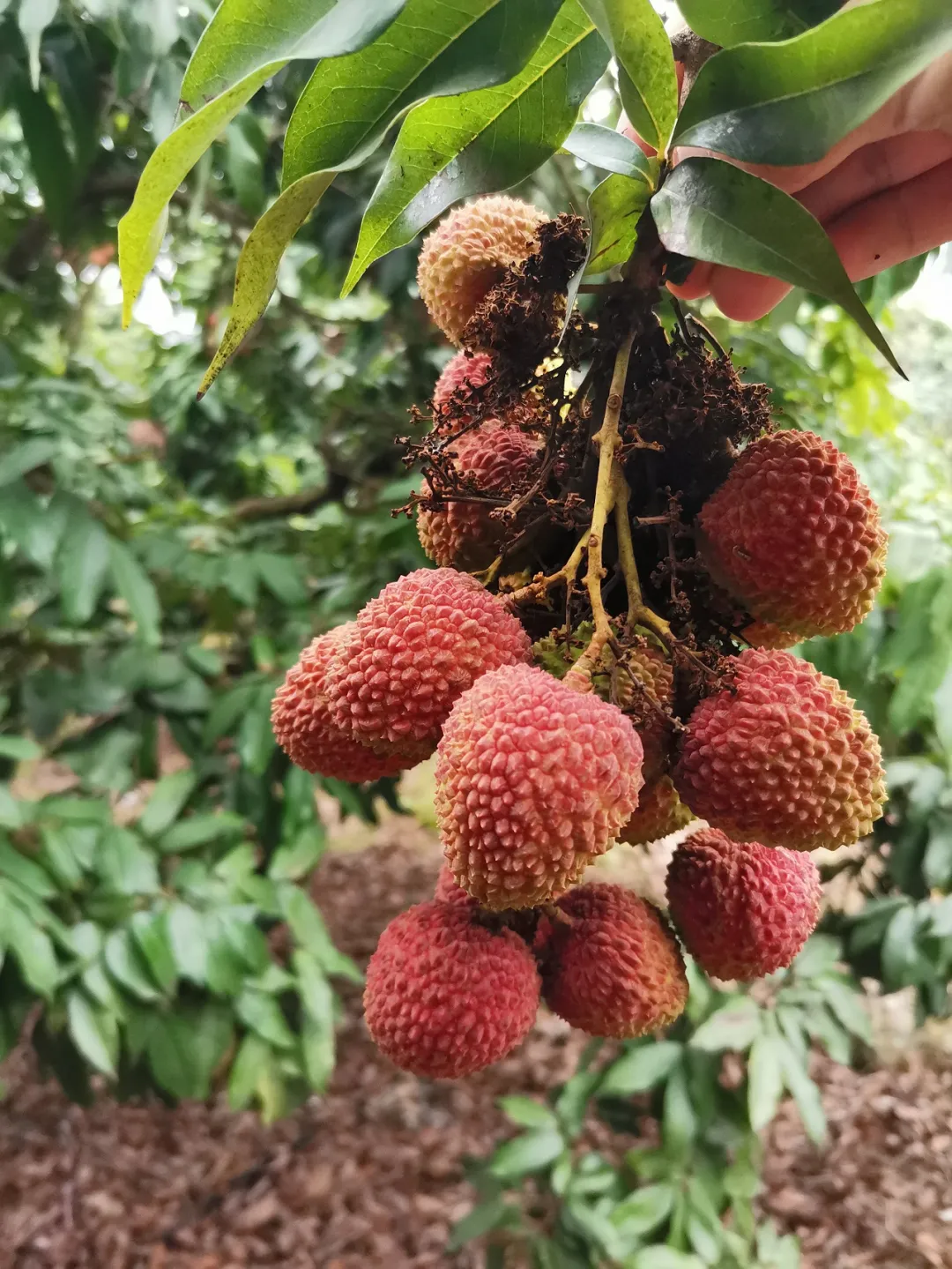 在西麗果場(chǎng)第二分場(chǎng),記者看到,一串串個(gè)頭飽滿的妃子笑壓彎了樹(shù)枝,青中泛紅,甚是誘人。隨意采摘一顆,果肉細(xì)嫩,甘甜多汁?!板有θ种环杭t,是最新鮮美味的時(shí)候?!鼻窠鸬f(shuō),今年南山荔枝妃子笑收成屬于中等偏上年份,整個(gè)西麗果場(chǎng)場(chǎng)部的產(chǎn)量估計(jì)有5萬(wàn)公斤,本月底正式上市。