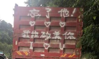 近日,貴陽一30歲貨車司機(jī)為了表達(dá)妻子和自己一起拉砂相濡以沫的感情,趁著十五天的臨牌期,效仿網(wǎng)絡(luò)短視頻,用白色自噴漆在車身上噴涂了“忘了他,我拉砂養(yǎng)你”的標(biāo)語。