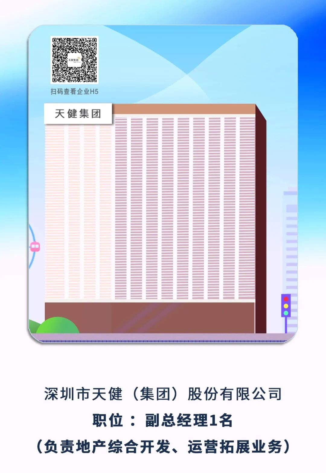 6、深圳市天健(集團(tuán))股份有限公司副總經(jīng)理1名(負(fù)責(zé)地產(chǎn)綜合開發(fā)、運(yùn)營拓展業(yè)務(wù))