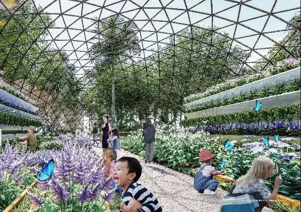 為生態(tài)森林公園,它模擬深圳的山地森林生境,營造大灣區(qū)山地森林的典型生境群落,在城市中心營造出自然教育與沉浸式學習的環(huán)境,設置生態(tài)教室、植物溫室等,形成戶外自然科普中心和自然主題為主的藝術(shù)花園。