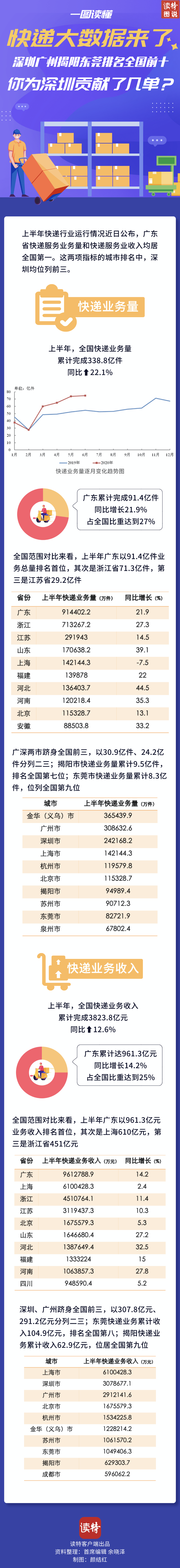 一圖讀懂|快遞大數(shù)據(jù)來(lái)了 深圳廣州揭陽(yáng)東莞排名全國(guó)前十 你為深圳貢獻(xiàn)了幾單?