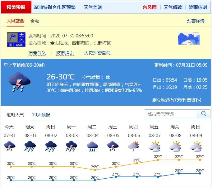 見圳客戶端·深圳新聞網(wǎng)2020年7月31日訊(記者 陳婕 施冰冰)連續(xù)一周暴雨,還有8級陣風要來!上班族們,雨具、短褲和拖鞋快通通備起來啦!記者從市氣象局了解到,深圳31日受偏東氣流影響,有間歇性雷陣雨,雨量可達大雨,南部地區(qū)暴雨,雨時伴有8級左右短時陣風,高溫天氣緩解;1-4日受熱帶低壓和季風共同影響,深圳有暴雨局部大暴雨,沿海、高地和海區(qū)最大陣風8級左右;深汕有大暴雨局部特大暴雨,陣風8-10級。