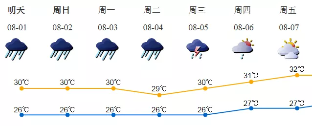 7月31日至8月2日我市有暴雨,東部、南部有大暴雨,沿海、高地和海區(qū)最大陣風8-10級。3-5日仍有暴雨,局部大暴雨。