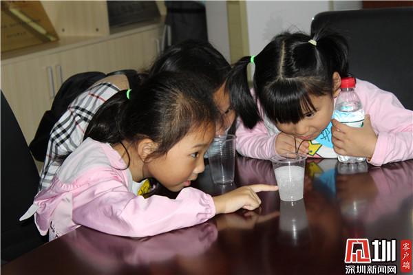 30位社區(qū)青少年年紀(jì)最小的6歲,最大的12歲,有的是跟家長(zhǎng)一起,有的是兄弟姐妹一起來,他們認(rèn)真聽課,積極參與實(shí)驗(yàn),眼看著普普通通的自來水,加入一種化工原料,就從液體變成了顆粒狀,霏霏小朋友張大了嘴巴驚呼:“好神奇??!”在老師的講解下,他們知道了其中的原理,同時(shí)也學(xué)會(huì)了尋找身邊生活中的科學(xué)現(xiàn)象,用化學(xué)的視角理解身邊的問題。