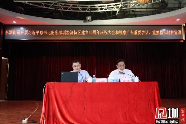 見圳客戶端·深圳新聞網(wǎng)11月26日訊(記者 劉晨 通訊員 魏官明 陳惠冰)11月26日下午,深圳市羅湖區(qū)東湖街道舉行習(xí)近平總書記出席深圳經(jīng)濟(jì)特區(qū)建立40周年慶祝大會和視察廣東重要講話、重要指示精神宣講報(bào)告會,活動特邀羅湖區(qū)委宣講團(tuán)成員、區(qū)發(fā)展研究中心黨組書記、主任王西星作主題宣講。 街道黨政領(lǐng)導(dǎo),街道各辦、中心業(yè)務(wù)負(fù)責(zé)人,各社區(qū)黨委書記、副書記,股份公司董事長,街道機(jī)關(guān)各黨支部及各社區(qū)黨建組織員、黨員共100余人參加了宣講活動?;顒佑山值傈h工委副書記、人大工委主任謝統(tǒng)敏主持。