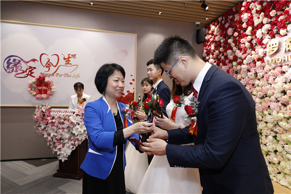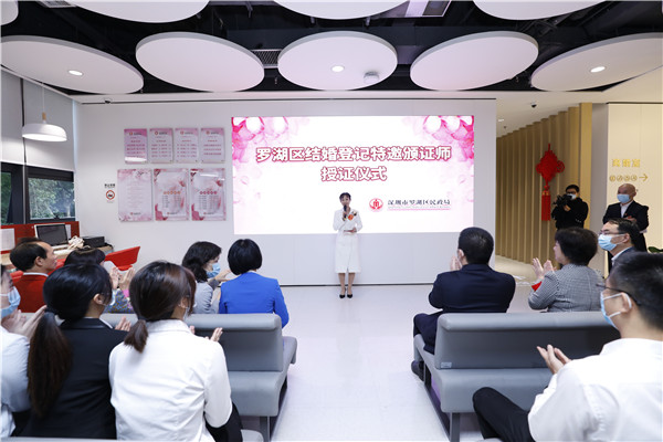 據(jù)悉,結婚登記頒證儀式是羅湖區(qū)民政局為了推崇簡約適度、文明向上的婚俗禮儀,倡導健康家庭倫理、婚姻文化、文明婚俗,培育好家風、傳承好家風,為結婚新人提供的免費服務。