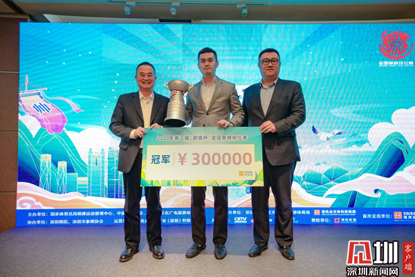 王志強(qiáng)與麥帆為王天一頒發(fā)今年“鵬城杯”獎(jiǎng)杯以及30萬元的冠軍獎(jiǎng)金。王天一表示,“鵬城杯”是國(guó)內(nèi)平均水平最高的賽事,經(jīng)過兩年成功辦賽,現(xiàn)在影響力越來越大,受到廣大棋手們和社會(huì)各方的重視,感謝深圳市文化廣電旅游體育局與佳兆業(yè)的鼎力支持。而“鵬城杯”也讓他在2020年末實(shí)現(xiàn)了一個(gè)小目標(biāo),今年唯一的一個(gè)個(gè)人賽冠軍,也實(shí)現(xiàn)了每年都能獲得一個(gè)冠軍的愿望。