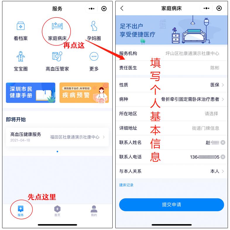 點(diǎn)擊【服務(wù)】-【家庭病床】-填寫基本信息。
