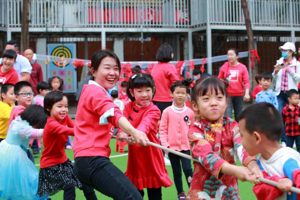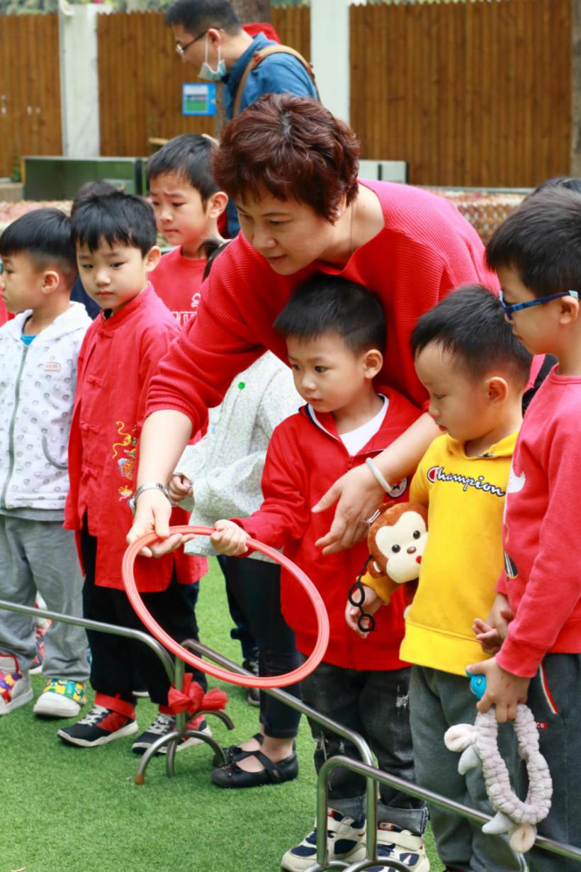 “加油!加油!”家長與孩子一起參加的拔河比賽讓全場氣氛沸騰,套圈、貼鼻子等活動,更是讓大人們體驗了一把兒時的歡樂。孩子們身系紅紅的綢帶、揮舞著漂亮的手絹,伴隨鑼鼓、嗩吶、镲奏出的動感曲調(diào)扭著秧歌,更是將現(xiàn)場氛圍推向了高潮。