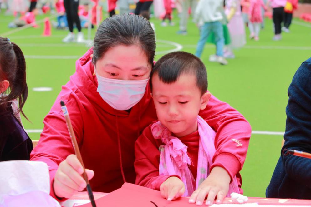 “來,媽媽教你寫毛筆字。”