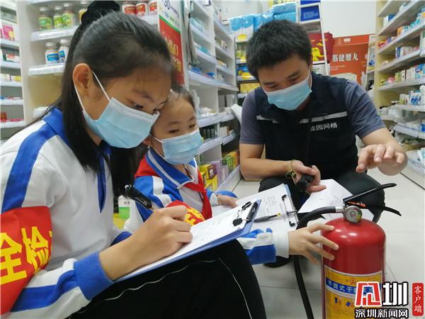 吳彥佳小朋友是第一組的小組長,他對照安全檢查表,對滅火器的放置、生產(chǎn)日期進行檢查核對,對煙霧感應器、應急照明燈、疏散指示牌是否使用正常進行逐一檢查,然后一絲不茍地登記在安全記錄表上。第二組的小朋友劉亞航在一家商鋪檢查時,發(fā)現(xiàn)滅火器被一堆物品壓在里面,他立刻把滅火器掏出來,在核對完有效期后,禮貌地反饋給老板,并請老板重視消防安全,正確放置滅火器。