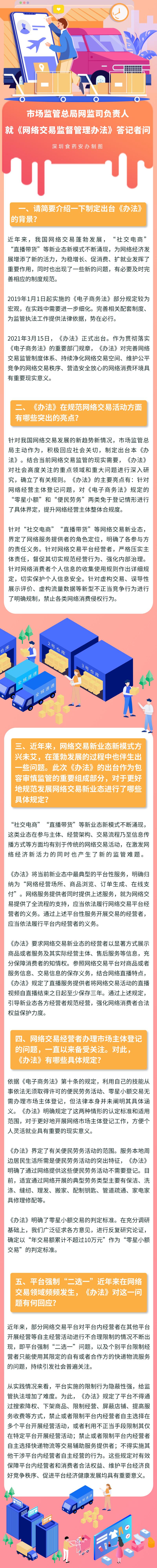 《辦法》明確了網(wǎng)絡(luò)交易監(jiān)管堅持鼓勵創(chuàng)新、包容審慎、嚴(yán)守底線、線上線下一體化監(jiān)管原則,提出推動完善多元參與、有效協(xié)同、規(guī)范有序的網(wǎng)絡(luò)交易市場治理體系,對網(wǎng)絡(luò)經(jīng)營主體登記、新業(yè)態(tài)監(jiān)管、平臺經(jīng)營者主體責(zé)任、消費(fèi)者權(quán)益保護(hù)、個人信息保護(hù)等重點(diǎn)問題作出了明確規(guī)定。