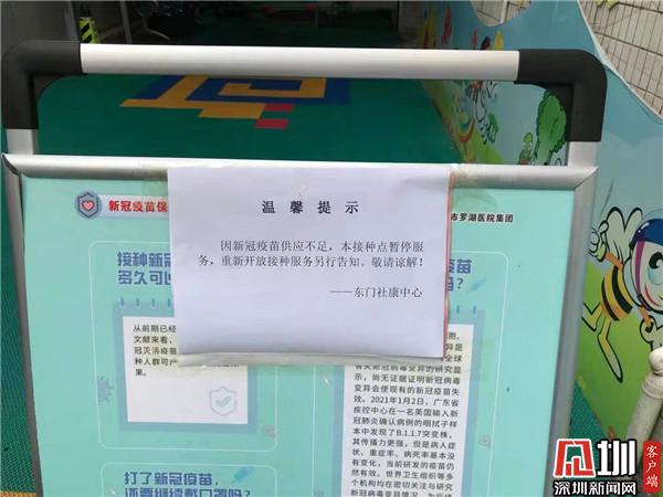 見(jiàn)圳客戶端·深圳新聞網(wǎng)4月7日訊(記者 彭桂紅 劉晨)“因新冠疫苗供應(yīng)不足,本接種點(diǎn)暫停服務(wù),重新開(kāi)放接種服務(wù)另行告知。敬請(qǐng)諒解!——東門(mén)社康中心。”4月6日,記者在羅湖區(qū)東門(mén)社康中心看到,該社康貼出了疫苗暫時(shí)供應(yīng)不足的告知。記者隨后走訪了其他幾個(gè)接種點(diǎn),一些社康也紛紛貼出了類似溫馨提示。記者了解到,除羅湖外,其他區(qū)的接種點(diǎn)也出現(xiàn)了類似“缺苗”現(xiàn)象。對(duì)此,記者采訪了羅湖區(qū)衛(wèi)健局,相關(guān)負(fù)責(zé)人表示,這段時(shí)間轄區(qū)新冠病毒疫苗接種率大幅提升,目前缺苗只是暫時(shí)性的,正在加強(qiáng)調(diào)配,隨時(shí)可能到苗,請(qǐng)大家耐心等待,同時(shí)留意相關(guān)提示。