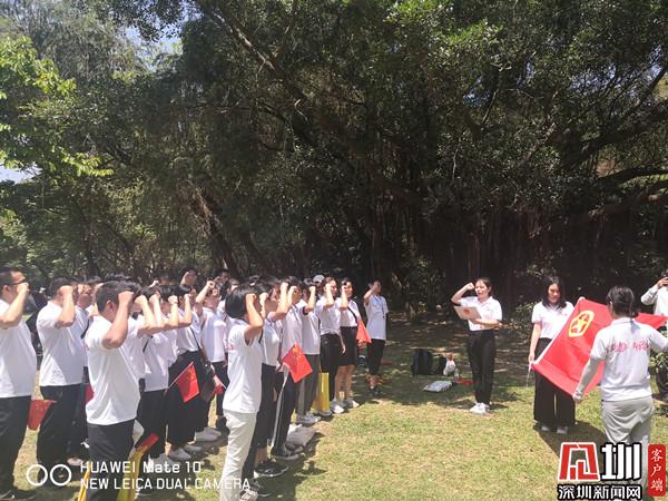 在鄧小平銅像廣場,大家精神抖擻、意氣風(fēng)發(fā),手持飄揚(yáng)的旗幟,再一次舉起右手,莊嚴(yán)宣誓。