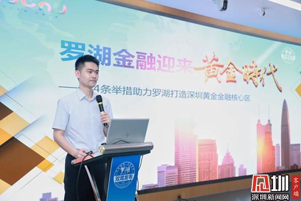 5月11日上午,羅湖“雙周發(fā)布”舉行黃金金融專場,羅湖區(qū)金融服務(wù)署副署長皮俊帶來“羅湖金融迎來‘黃金時代’——24條舉措助力羅湖打造深圳黃金金融核心區(qū)”為主題的發(fā)布。