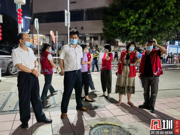 見圳客戶端·深圳新聞網(wǎng)2021年5月27日訊(記者 劉晨 通訊員  魏官明 陳惠冰)5月21日以來,深圳鹽田區(qū)、龍崗區(qū)相繼排查發(fā)現(xiàn)新冠肺炎無癥狀感染者,為堅決遏制疫情擴散蔓延,全力守護人民群眾的生命健康安全。羅湖區(qū)東湖街道按照市委市政府、區(qū)委區(qū)政府的統(tǒng)一部署,結(jié)合疫情防控形勢新變化,快速反應、周密部署,5月26日下午,火速整合各部門、各社區(qū)近400名工作人員組成6支防疫突擊隊伍,街道黨工委書記程時菊,黨工委副書記劉慧堅、謝統(tǒng)敏、沈文俊,黨工委委員方海峰,二級調(diào)研員張翠紅分別擔任6支隊伍的督導長,連夜帶領(lǐng)突擊隊員們奔赴各相關(guān)社區(qū)開展核酸檢測工作。