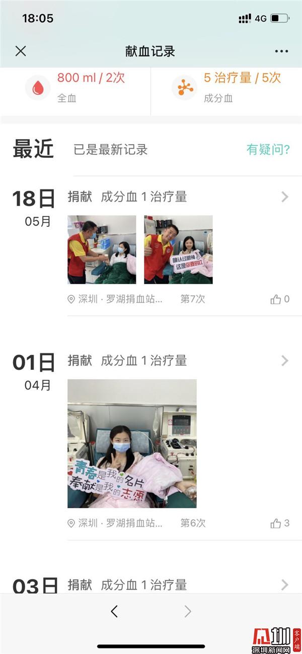 “工作之余有獻(xiàn)血的習(xí)慣,最近的一次是4月1日和5月18日?!?/p>