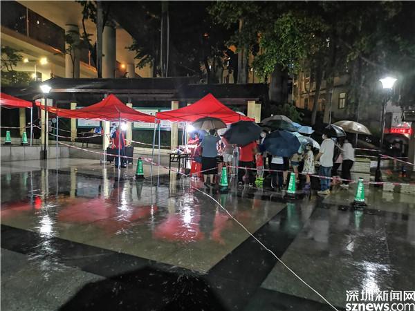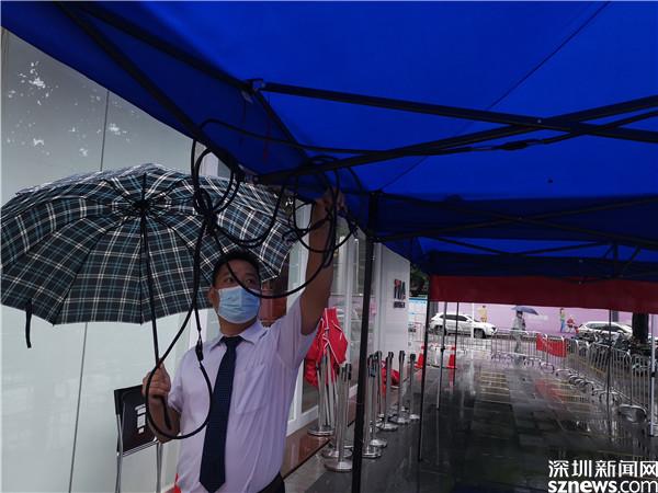讀特客戶(hù)端·深圳新聞網(wǎng)2021年6月21日訊(記者 李慧)6月21日晚及6月22日一早,深圳雷雨交加,深圳市氣象臺(tái)2021年06月22日07時(shí)10分在多個(gè)區(qū)域發(fā)布暴雨紅色預(yù)警,羅湖也包括其中。有那么一群人,嚴(yán)陣以待、逆雨迎風(fēng),堅(jiān)守在抗疫一線(xiàn)。記者到各核酸檢測(cè)點(diǎn)看到,醫(yī)護(hù)人員和社區(qū)義工們?nèi)匀幻爸L(fēng)雨,堅(jiān)守在核酸采集的崗位上。