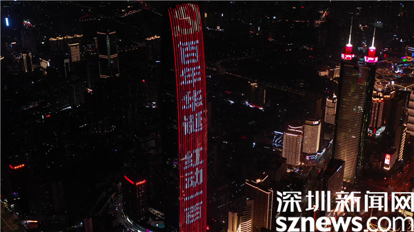 隨著參會領(lǐng)導(dǎo)和嘉賓按下儀式啟動鍵,羅湖地標建筑京基100被“點亮”,滾動顯示“百年華誕 紅動一百”、“崢嶸歲月 百年風(fēng)華”祝福語,噴泉廣場亮如白晝,映入觀眾眼中,現(xiàn)場發(fā)出陣陣贊嘆聲,將慶祝的氛圍推向高潮。