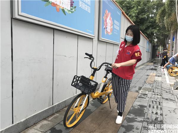 老圍社區(qū)共有55個共享單車點位,1500輛共享單車,每天有4、5千人次使用,利用率極高,同時也就存在亂擺放的情況?;顒赢斕?,志愿者們兩三人一組,對55個點位發(fā)起了攻擊,成人志愿者擺放單車,小小志愿者向騎單車的人發(fā)放《深圳市民文明手冊》,并及時提醒市民文明用車,文明停放。
