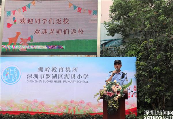 湖貝小學特邀了學校法治輔導(dǎo)員、東門派出所鐘警官尬同學們進行安全教育講座,強化了同學們在疫情防控、交通安全、法律知識等方面的意識。
