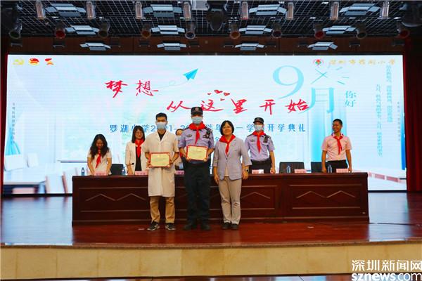 羅湖小學舉行開學第一課,內(nèi)容包括疫情防控、校長開學思政課、暑期“五星”作業(yè)分享、法治輔導(dǎo)員和勞動健康輔導(dǎo)員聘書頒發(fā)、學習“七一”勛章先進事跡等。