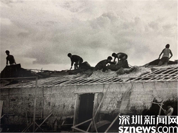 竹葉棚 1982 年部隊(duì)營房臺風(fēng)過后重拾家園。攝影/周順斌