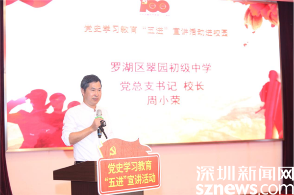 讀特客戶端· 深圳新聞網(wǎng)2021年10月26日訊(記者 郭含笑 通訊員 林宏基)10月25日,抗美援朝出國作戰(zhàn)71周年紀(jì)念日,在這個(gè)特殊的日子里,一場鮮活的黨史學(xué)習(xí)教育宣講活動(dòng)在羅湖區(qū)翠園初級中學(xué)舉行。宣講活動(dòng)實(shí)況,全校2400多名師生同步網(wǎng)絡(luò)觀看。