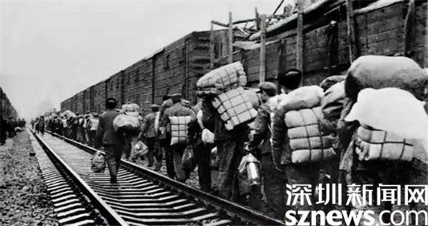 1979年基建工程兵的第一批先遣部隊(duì)抵達(dá)深圳,下火車時(shí)的情景。攝影/周順斌