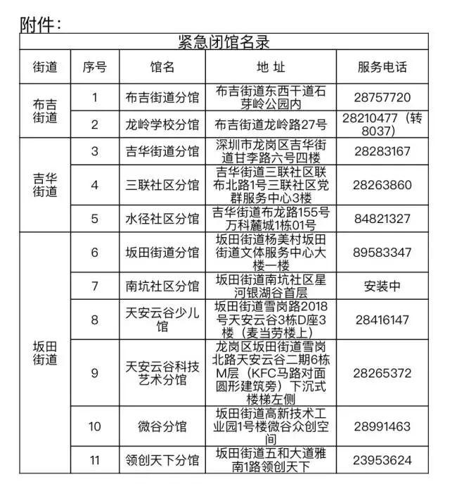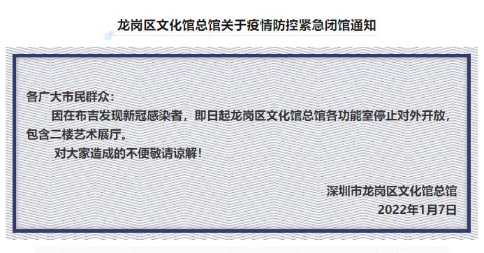 1月7日,深圳市龍崗區(qū)圖書館發(fā)布通知稱,因疫情防控工作需要,為保障市民讀者健康安全,經(jīng)研究決定,區(qū)圖書館在布吉、坂田和吉華三個(gè)街道的所有分館,自2022年1月7日起臨時(shí)閉館,暫停到館讀者服務(wù)和各項(xiàng)活動(dòng),進(jìn)行衛(wèi)生消殺、內(nèi)務(wù)整理等,恢復(fù)開館時(shí)間另行通知。