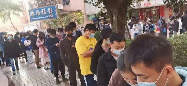 ▲坂田星河銀湖谷樓下也排起長(zhǎng)長(zhǎng)的核酸檢測(cè)隊(duì)伍,除了本地居民,人群里還有附近工地的建筑行業(yè)從業(yè)者、外賣小哥等。