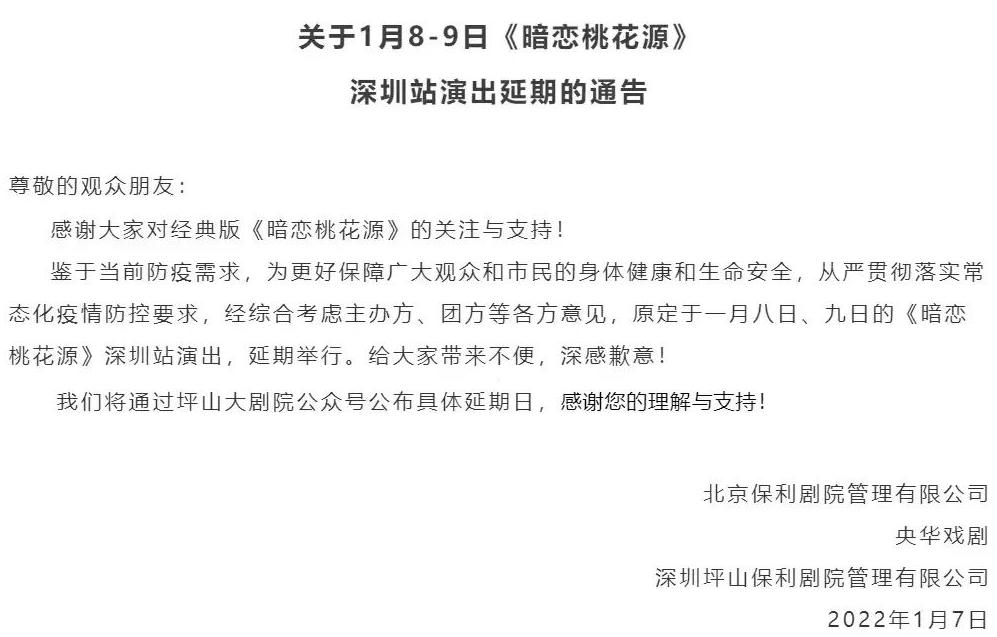 為配合疫情防控要求,減少因人群聚集帶來(lái)的病毒傳播風(fēng)險(xiǎn),切實(shí)保障人民群眾生命安全,原定于2022年1月7日19:30在深圳戲院劇場(chǎng)(一號(hào)廳)舉行的大型粵劇《情僧偷到瀟湘館》演出取消,敬請(qǐng)知悉。