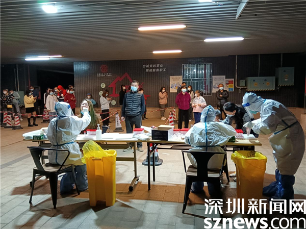 這天,老圍社區(qū)某棟樓全員檢測(cè),社區(qū)緊急設(shè)立了臨時(shí)檢測(cè)點(diǎn),社區(qū)黨委書記許少瓊忙前忙后指揮布置現(xiàn)場(chǎng),調(diào)度管理處通知住戶下樓采樣,所有社區(qū)工作人員緊急行動(dòng)起來(lái),醫(yī)務(wù)人員也很快就位,居民積極配合,采樣工作有序進(jìn)行。